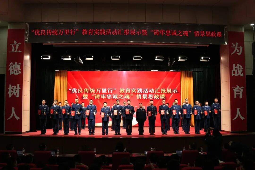为弘扬优良传统、赓续红色血脉,以生动形式推动一流大学《决定》思政育人体系落地落实,近日,航空工程学院紧扣“忠诚”主题,举办“优良传统万里行”教育实践活动汇报展示暨“铸牢忠诚之魂”情景思政课。活动特邀西安交通大学师生代表共同参与,采用节目创排、AI互动、专题授课、军地交流等多元形式,精心打造沉浸式、对话式、思辨式的思政育人新场景,推动思想政治教育入脑入心、走深走实,实现从情感共鸣到理性认同,再到行动自觉的深度升华,教育引导全体官兵铸牢忠诚品格、凝聚奋进力量,为一流大学建设发展注入强劲精神动能。