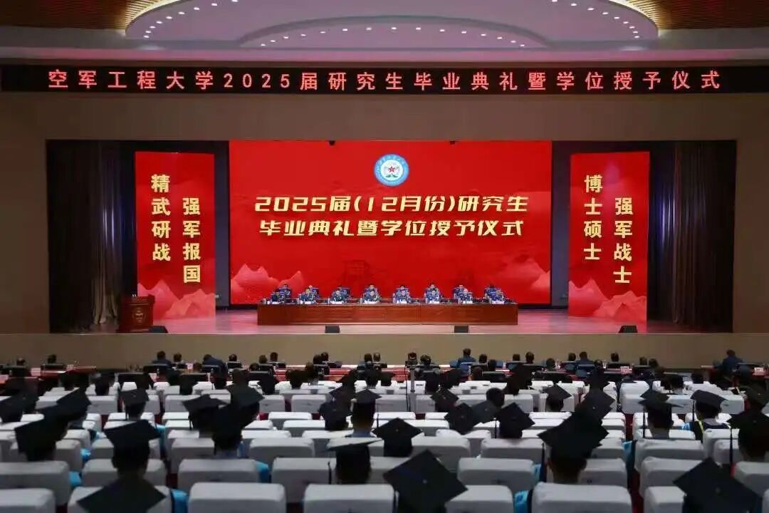 1月6日上午,大学2025届(12月份)研究生毕业典礼暨学位授予仪式在中心校区空天礼堂隆重举行。大学少将政治委员蔡渭滨出席典礼并讲话,校党委常委,各院(部、系)主官,毕业研究生及导师、家属,研究生学员代表参加。典礼由大学大校副校长兼教育长魏成凯主持。