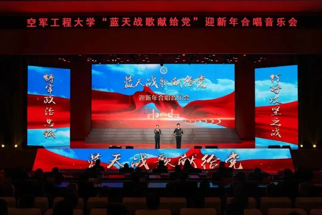 奋进建军百年路,蓝天战歌献给党。为进一步凝聚全校官兵奋进百年、攻坚冲刺的强大精神力量,12月26日晚,大学隆重举行“蓝天战歌献给党”迎新年合唱音乐会,全校官兵以铿锵战歌致敬峥嵘岁月,以激扬旋律告白强军征途,唱响向心凝聚、矢志一流的追求夙愿,唱出同心筑梦、砥砺前行的如虹气势。