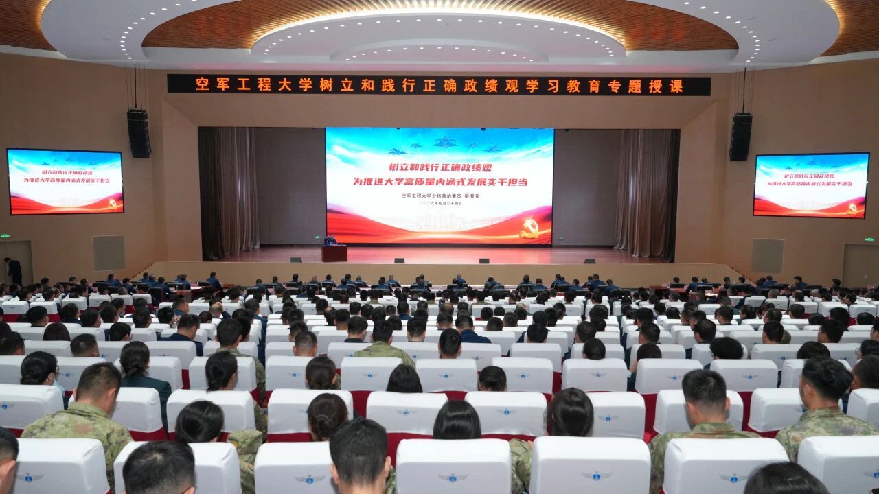 根据军委、空军关于开展树立和践行正确政绩观学习教育有关部署安排,4月24日下午,大学党委书记、少将政治委员蔡渭滨围绕“树立和践行正确政绩观,为推进大学高质量内涵式发展实干担当”主题,为全校教员干部作专题授课。
