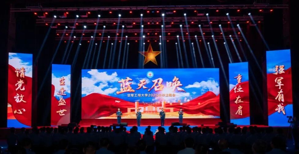 奋楫扬帆启新程,砥砺强军再出发。7月13日晚,空军工程大学隆重举办2025年“蓝天召唤”毕业晚会,全体毕业班学员以军歌为号、以战旗为幕,用一场热血与荣光交织的青春盛典,为四年汗水浇灌的迷彩年华圆满收官。大学少将校长杨学锋、少将政治委员蔡渭滨出席,大学党委常委、校机关处办领导,各院(部、系)主要领导一同观看演出。